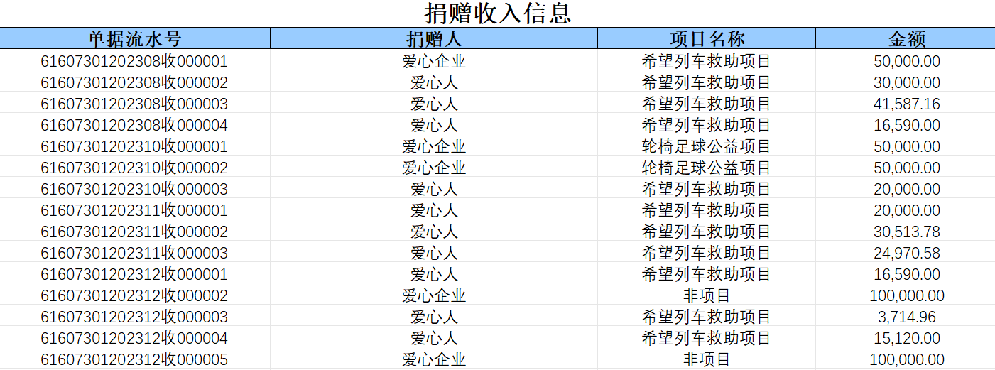 2023年捐赠收入信息