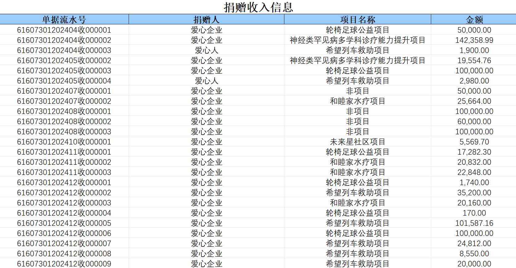 2024年捐赠收入信息